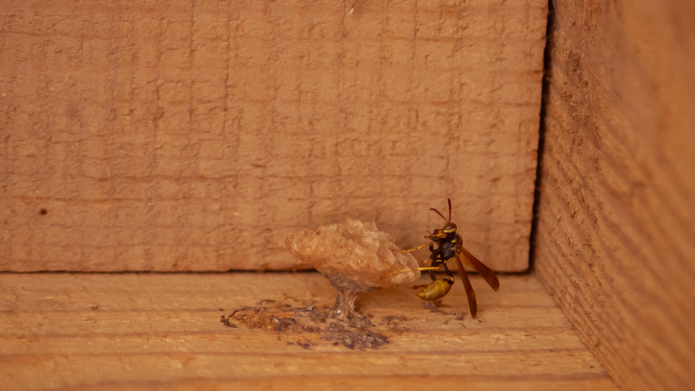 A western paper wasp (Mischocyttarus flavitarsis) at Stanford University.